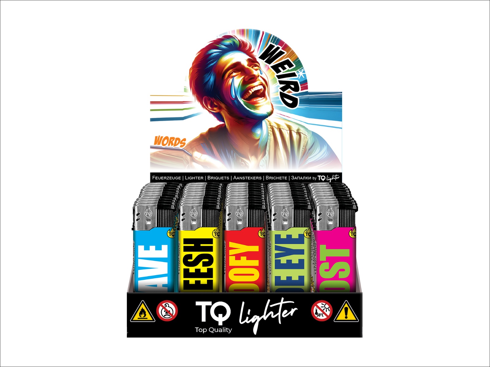 Weiterführende Links zu "TQ Feuerzeug Elektronik, WEIRD WORDS im Thekendisplay 12,5 x 13 cm"
