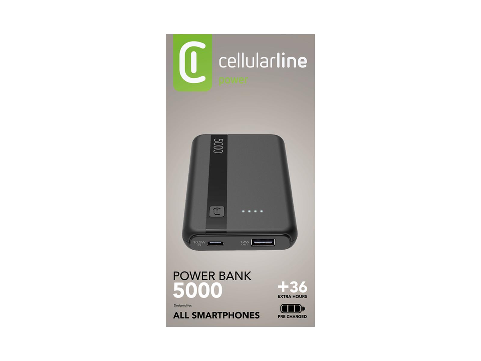 cellularline Powerbank 5000 mAh, USB-A-C, schwarz