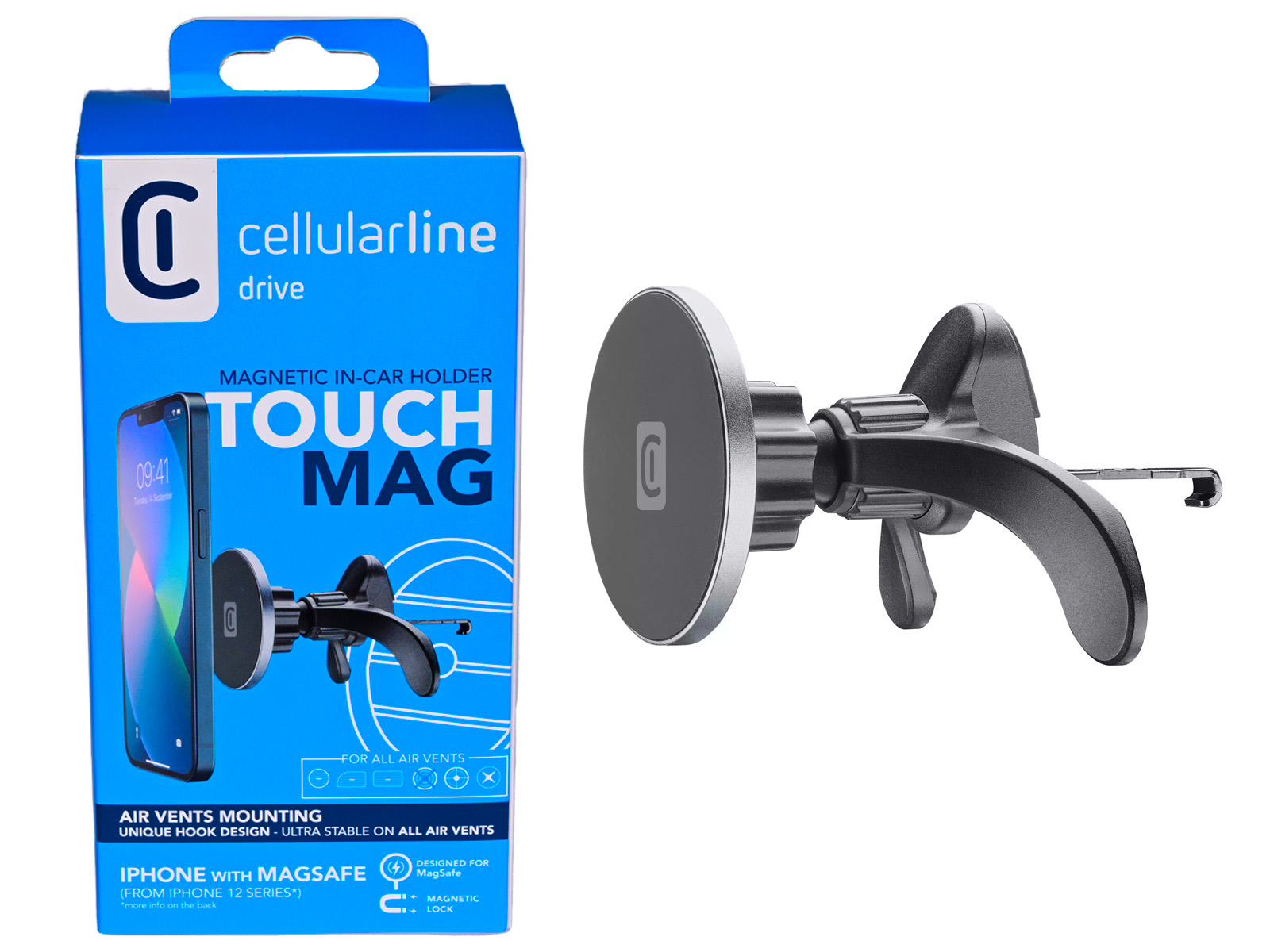 Weiterführende Links zu "cellularline KFZ Handyhalter MagSafe für Lüftungsschlitz auch für runde Lüftungsgitter, für iPhones"
